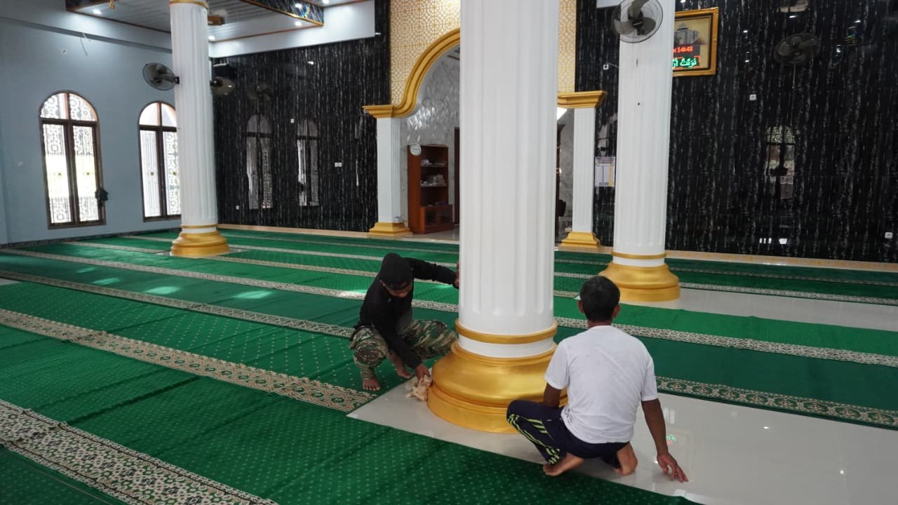 Jelang Sholat Jum’at, Satgas TMMD Reguler ke-127 Kodim 1015/Sampit Bersihkan Masjid Nurul Mukhlisin