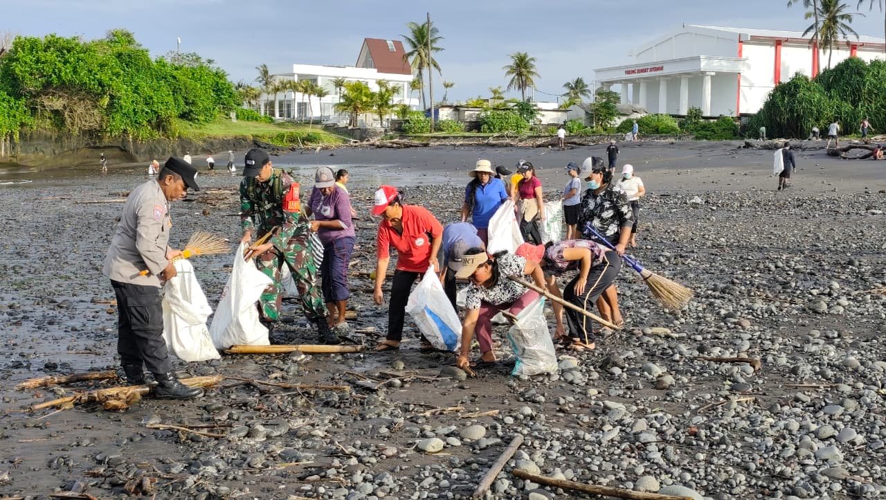 Kegiatan gotong royong tersebut dilaksanakan dengan tujuan membersihkan sampah dan menjaga kesucian area pesisir yang akan digunakan sebagai lokasi rangkaian upacara Melasti menjelang Hari Raya Nyepi.