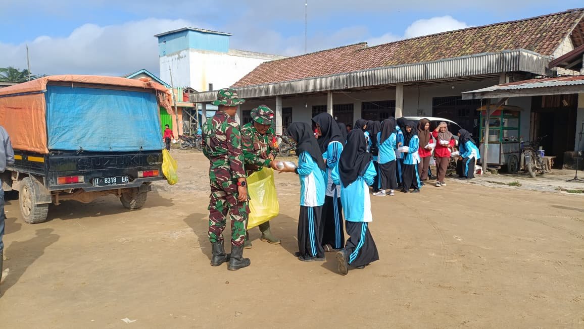 Turut hadir dalam kegiatan tersebut Kasdim 1014/Pbn Mayor Inf Sumarna, Pasi Log, serta anggota Koramil Pangkalan Banteng yang bersama-sama membagikan makanan kepada masyarakat.