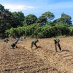 Semangat kerja di lapangan menunjukkan sinergi yang kuat antara TNI dan warga, mencerminkan nilai gotong royong yang menjadi ciri khas masyarakat pedesaan Manggarai.