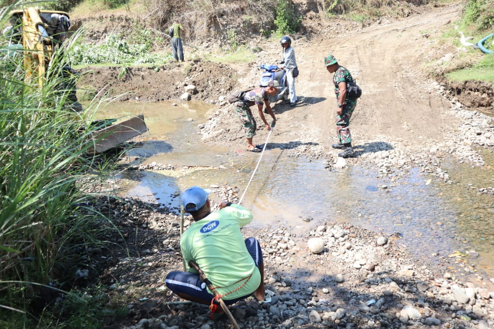 Personel Kodim 1316/Boalemo turun tangan langsung bergotong royong bersama masyarakat mengumpulkan berbagai jenis sampah, baik organik maupun nonorganik. Sampah-sampah tersebut dikumpulkan di satu titik, menunjukkan sinergi dan kolaborasi yang erat.