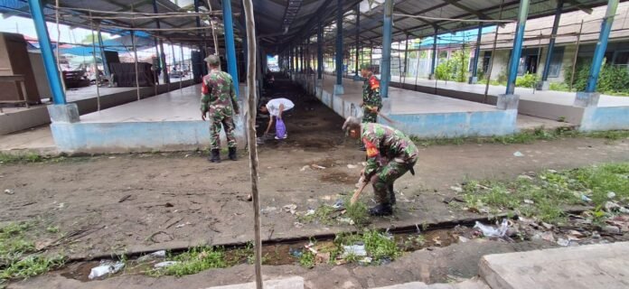 Karya Bakti Lingkungan, Koramil Rantau Badauh Wujudkan Pasar Sehat dan Hijau