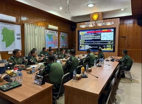 Rapat tersebut diikuti oleh para Asisten Kodam, perwira staf operasi, serta perwakilan satuan kewilayahan jajaran Kodam XXIV/Mandala Trikora, baik yang hadir langsung di Makodam maupun yang mengikuti melalui Vicon.