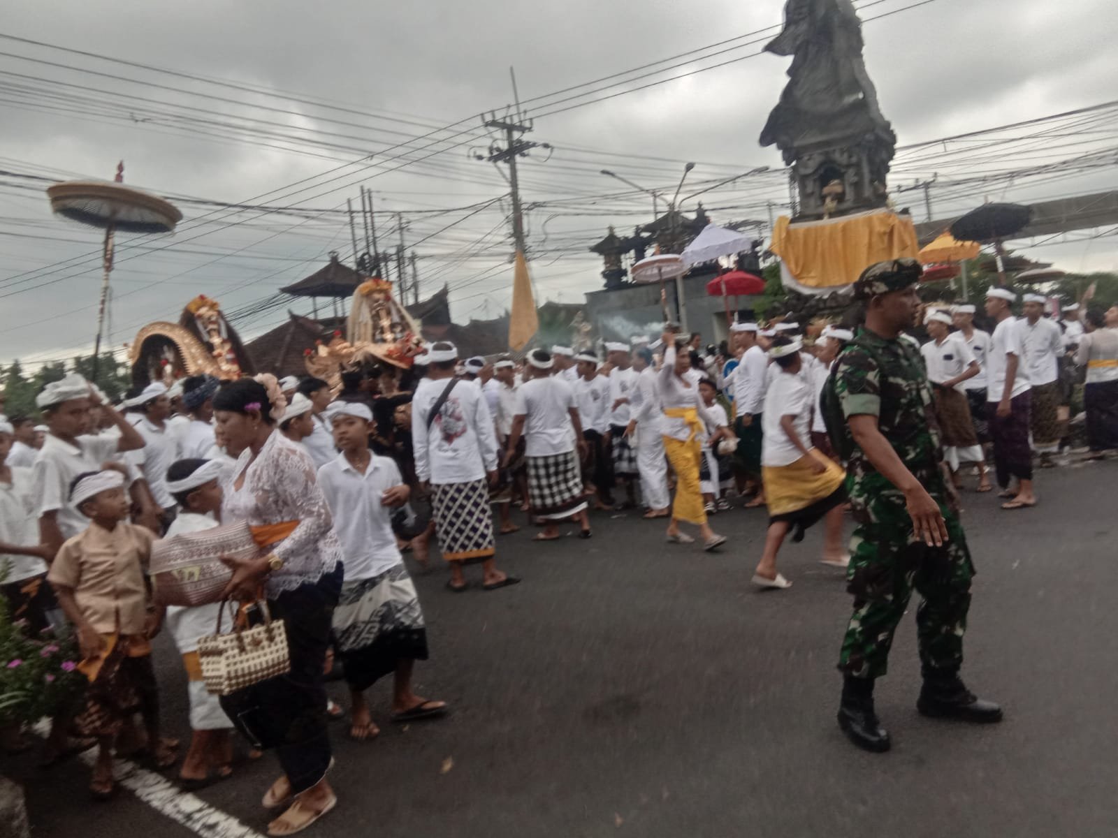 Dalam keterangannya, Babinsa Tojan Serka Ketut Sudarma menyampaikan bahwa prioritas pengawalan yang dilakukan pihaknya adalah pengamanan jalur lalu lintas yang digunakan dalam serangkaian prosesi upacara ini.