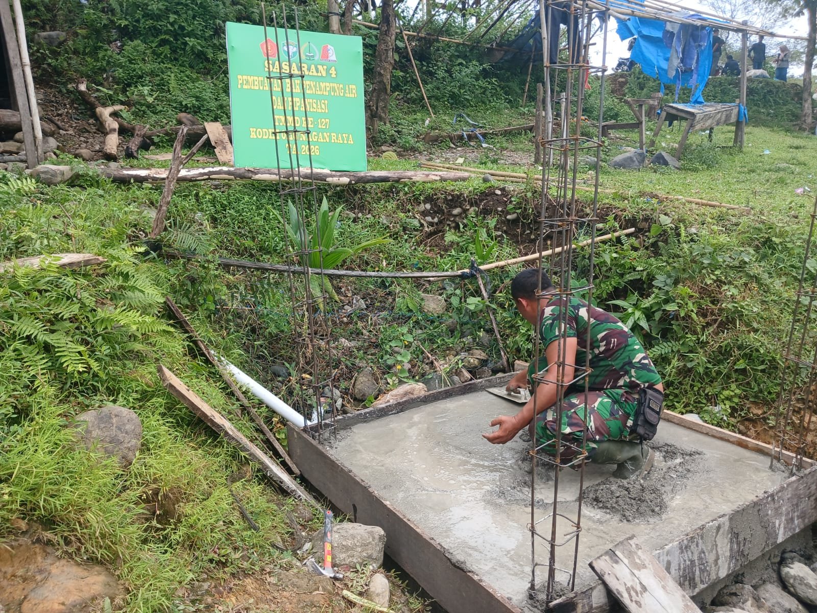 Saat ditemui di lokasi salah satu anggota Satgas TMMD, Peltu Farul Raji menjelaskan bahwa pembangunan bak penampungan air bersih menjadi prioritas karena kebutuhan air bersih sangat penting bagi kehidupan sehari-hari warga.