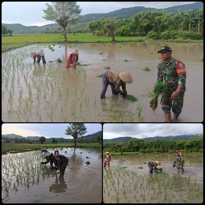 NTB-Dompu. Sebagai upaya untuk mendukung program pemerintah di bidang swasembada pangan, jajaran Babinsa Kodim 1614/Dompu, turut serta melaksanakan pendampingan menanam padi di beberapa wilayah masing-masing Koramil.