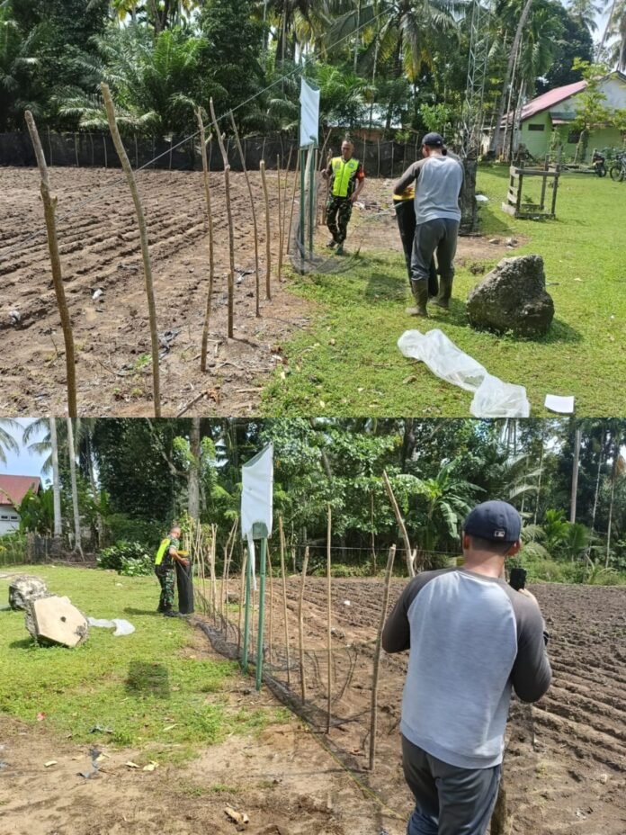 Kemanunggalan TNI dan Rakyat Terlihat dalam Pemasangan Pagar Kebun