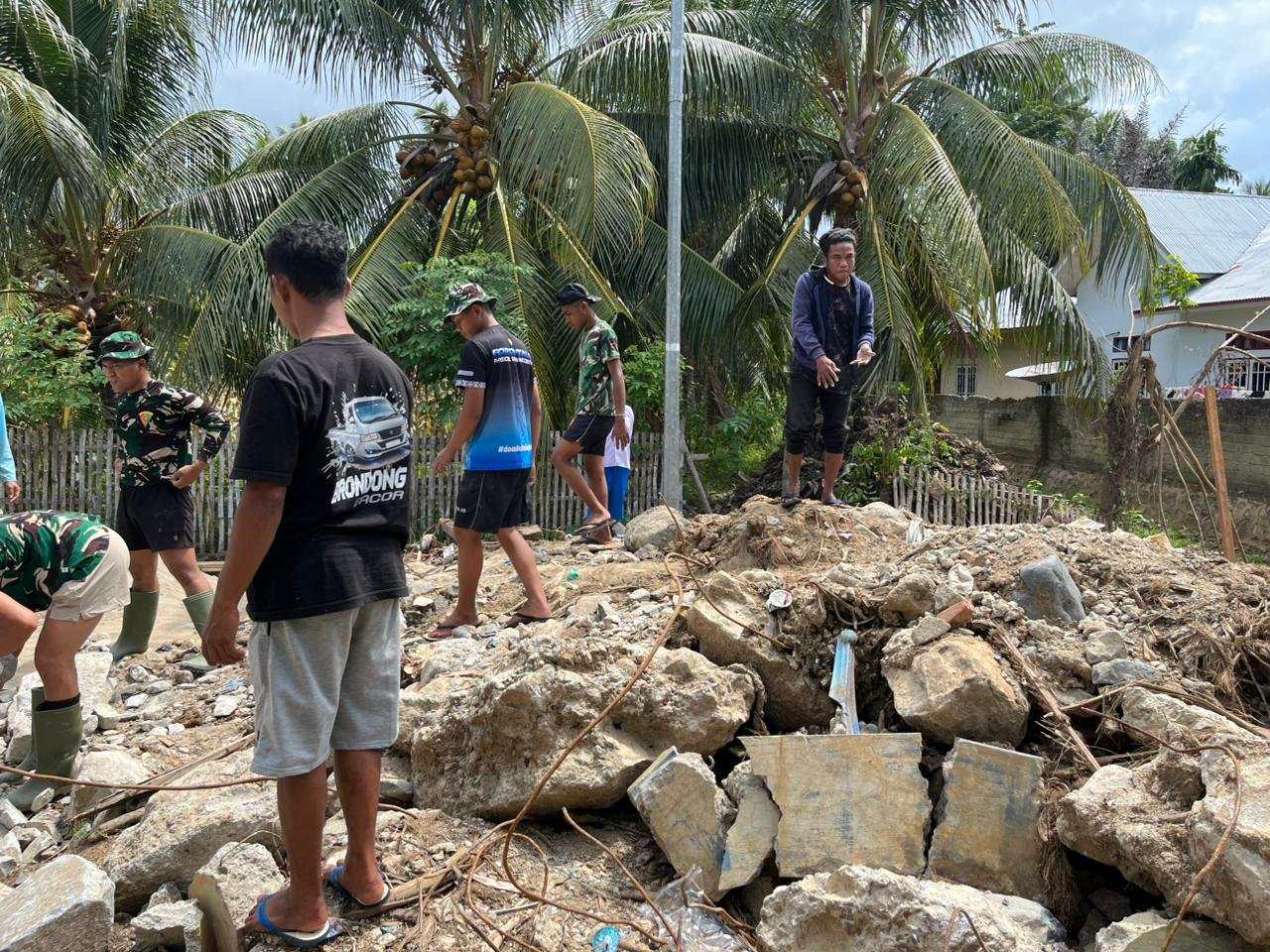 Selain itu, pekerjaan juga difokuskan pada penimbunan material pendukung di sekitar area penyangga jembatan guna memastikan konstruksi memiliki kekuatan yang maksimal. Meski cuaca di lokasi cukup terik, semangat kerja para personel dan warga tetap tinggi dalam menyelesaikan setiap tahapan pembangunan.