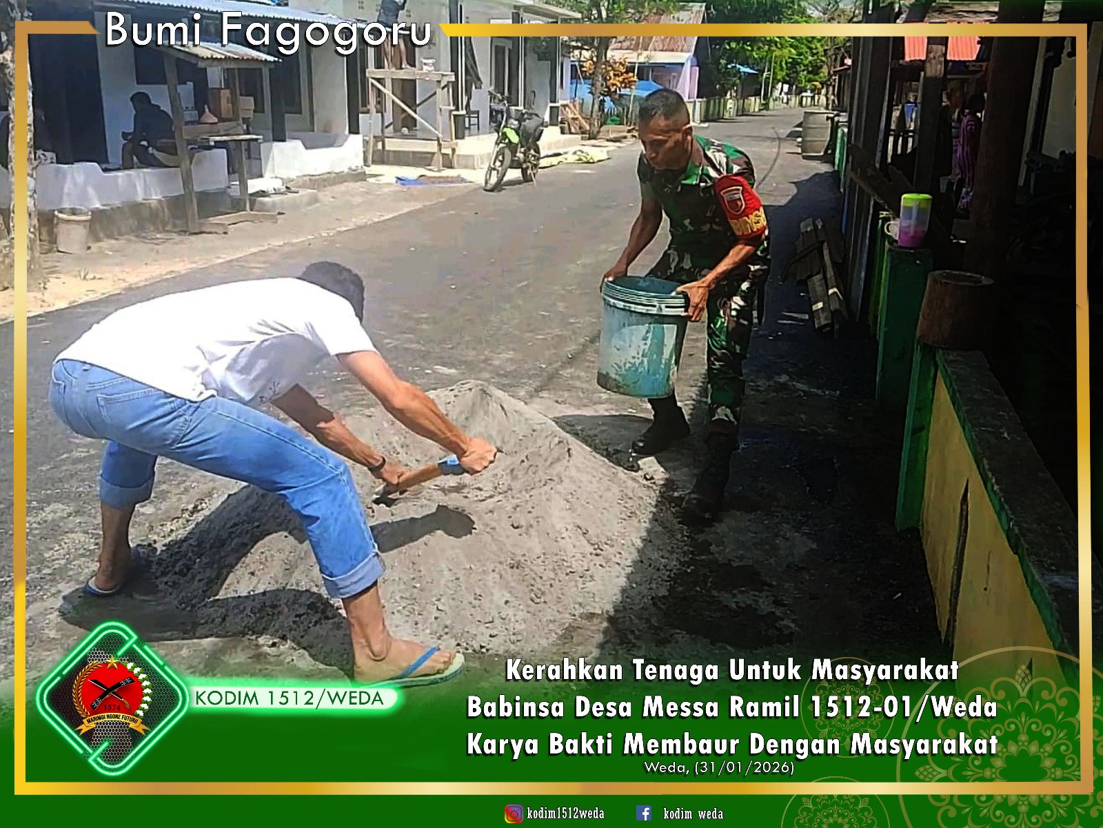Halmahera Tengah-Babinsa Kopda Idrus Wally melaksanakan giat Karbak, membantu pembangunan rumah milik Bapak Dulla, bertempat di Desa Messa Kecamatan Weda Timur Kabupaten Halmahera Tengah.Sabtu, (31/01/2026)