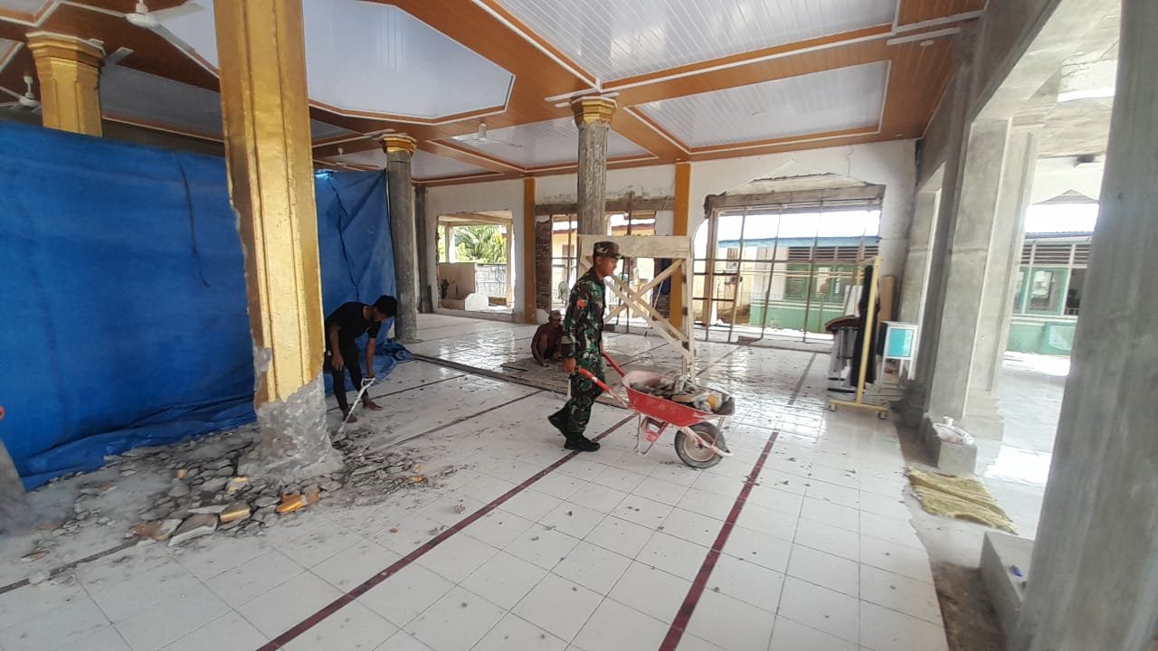 Melihat pentingnya fungsi masjid bagi kehidupan masyarakat, warga bersama Babinsa berinisiatif melakukan perbaikan pada beberapa bagian bangunan serta membersihkan area sekitar agar tempat ibadah tersebut semakin nyaman digunakan.