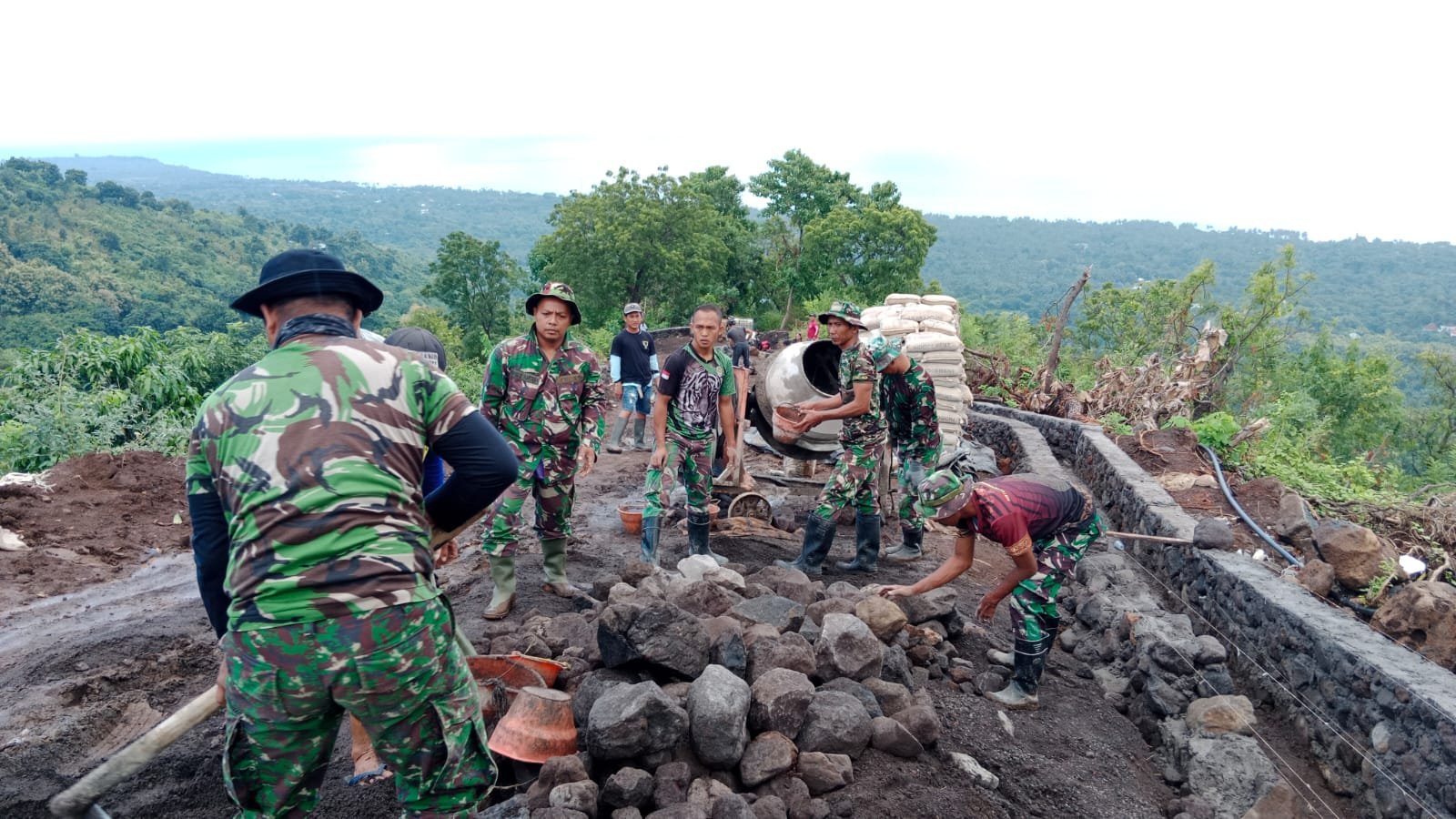 Selain anggota TNI, masyarakat setempat juga ikut serta membantu dalam proses pembangunan. Partisipasi aktif warga mencerminkan semangat kebersamaan dalam membangun infrastruktur desa yang lebih baik.