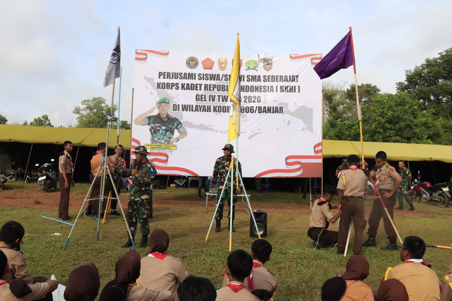 Banjarbaru – Kodim 1006/Banjar melaksanakan upacara pembukaan Korps Kadet Republik Indonesia (KKRI) Gelombang IV Tahun 2026 di Lapangan Denzipur 8/GM, Jalan A. Yani Km 30,5 Guntungmanggis, Kecamatan Landasan Ulin, Kota Banjarbaru, Kalimantan Selatan, Kamis (27/2/2026) sore. Kegiatan ini menjadi tanda dimulainya pelatihan karakter dan kedisiplinan bagi 100 siswa/siswi SMA/SMK sederajat yang akan berlangsung selama tiga hari, 27 Februari hingga 1 Maret 2026.