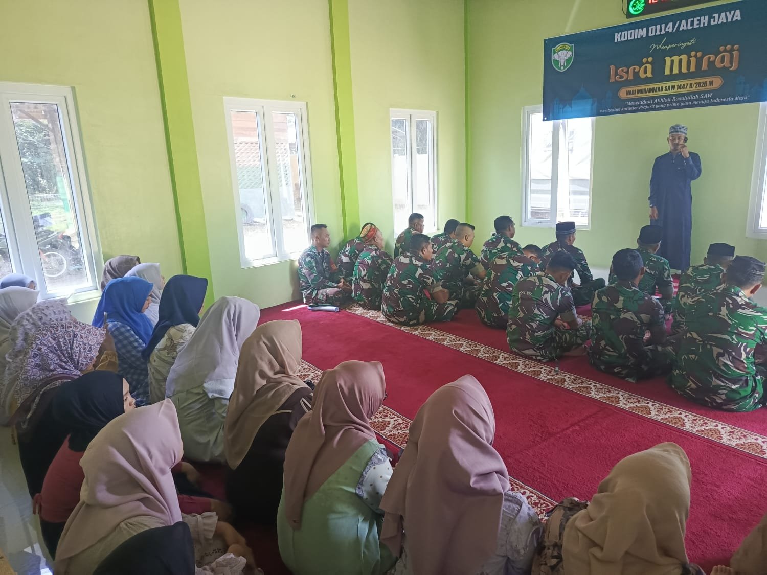 ACEH JAYA — Anggota Kodim 0114/Aceh Jaya memperingati Isra’ Mi’raj Nabi Muhammad SAW Tahun 1447 Hijriah/2026 Masehi yang dilaksanakan di Musholla Al-Jannah Makodim 0114/Aceh Jaya, Senin (19/01/2026).