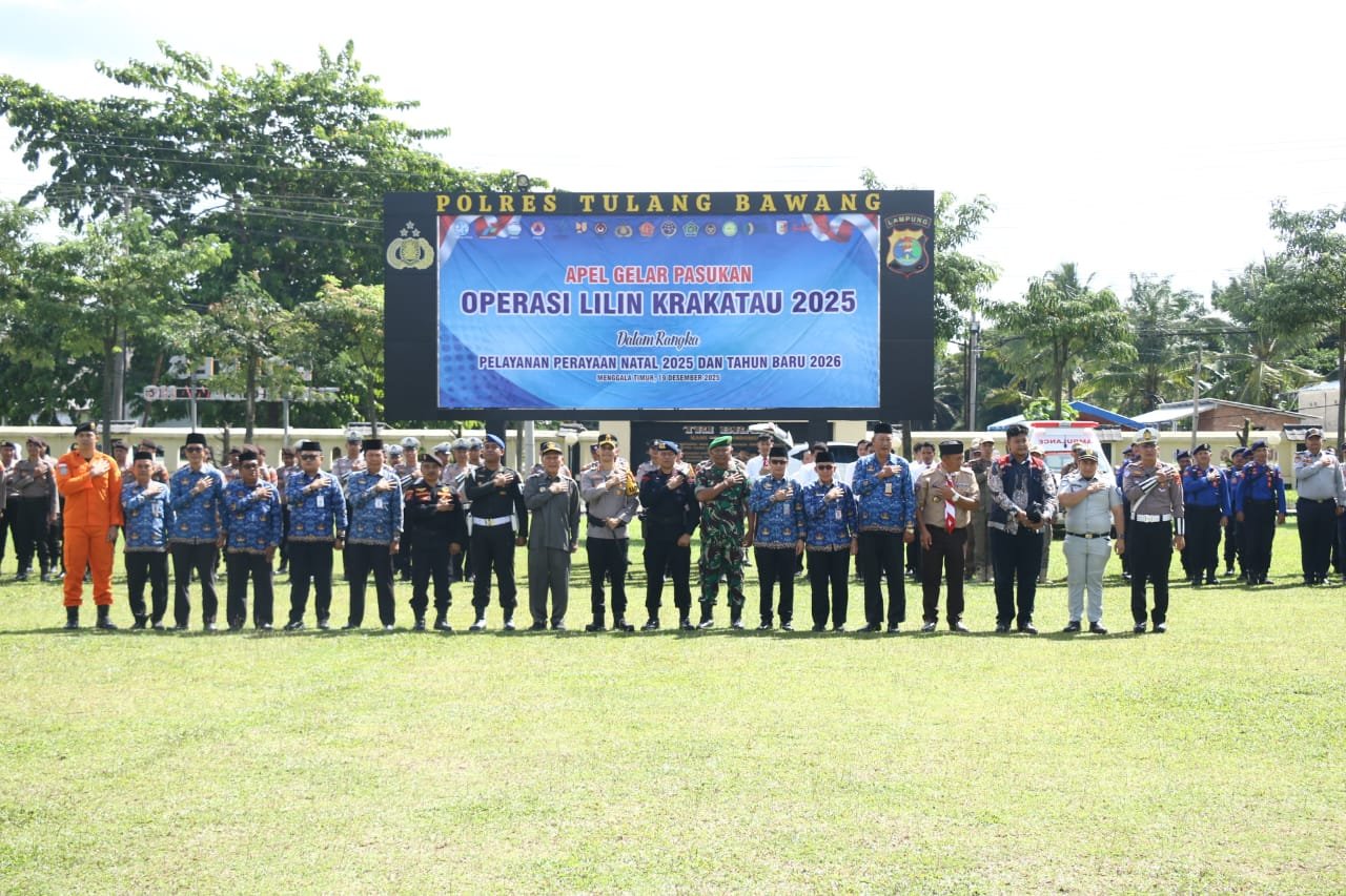 Menggala Timur (Tulang Bawang) — Kodim 0426/Tulang Bawang melaksanakan Apel Gelar Pasukan Operasi Lilin Krakatau Tahun Anggaran 2025 dalam rangka pengamanan perayaan Natal 2025 dan Tahun Baru 2026. Kegiatan tersebut berlangsung di Mapolres Tulang Bawang, Jalan Lintas Timur Sumatera KM 13, Kelurahan Lebuh Dalam, Kecamatan Menggala Timur, Kabupaten Tulang Bawang, Jumat (19/12/2025).