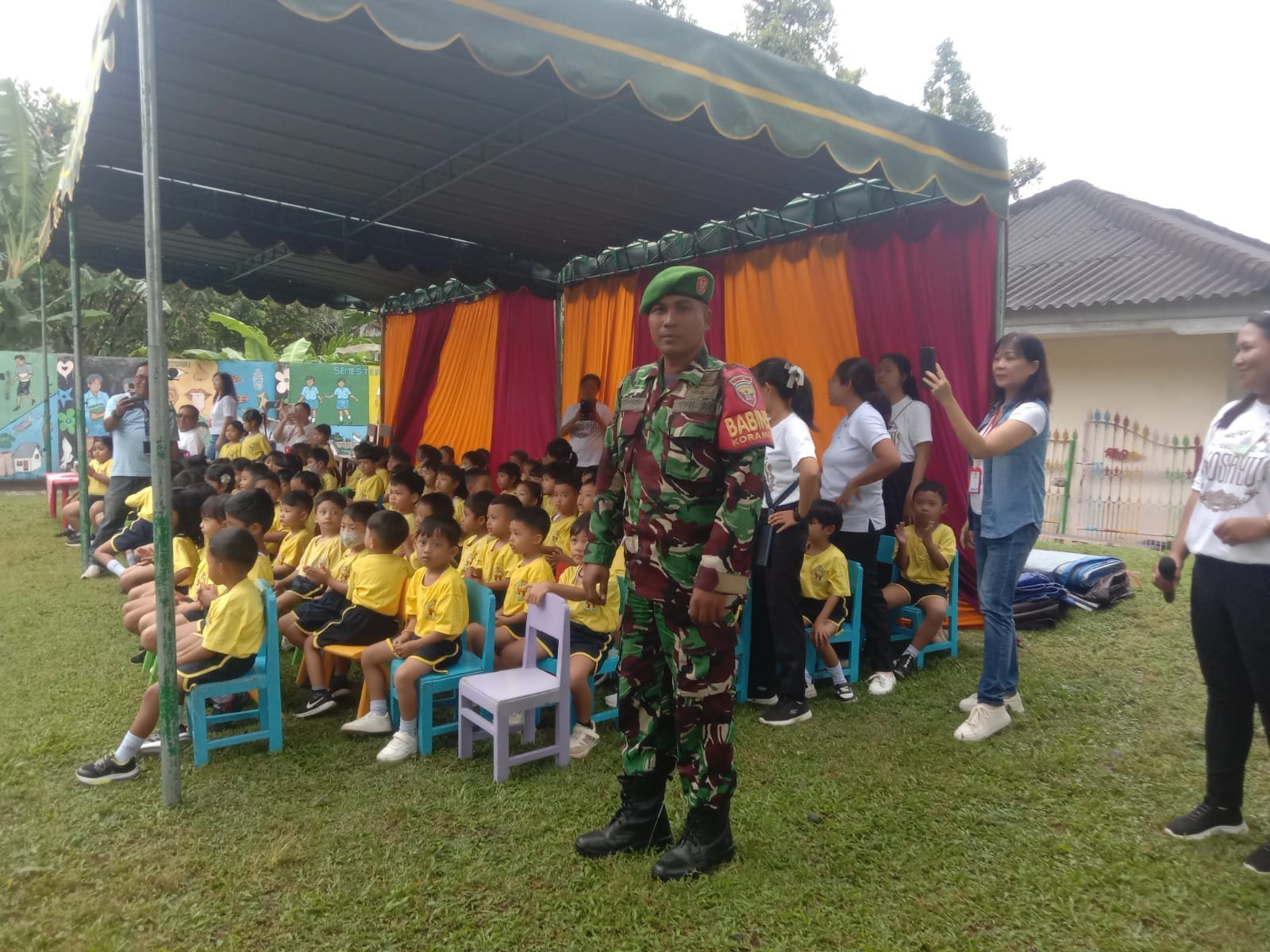 Dalam kegiatam ini turut dihadiri oleh, TNI, Polri, Kecamatan, Dewan Guru, Organisasi Sekolah, Siswa-Siswi.