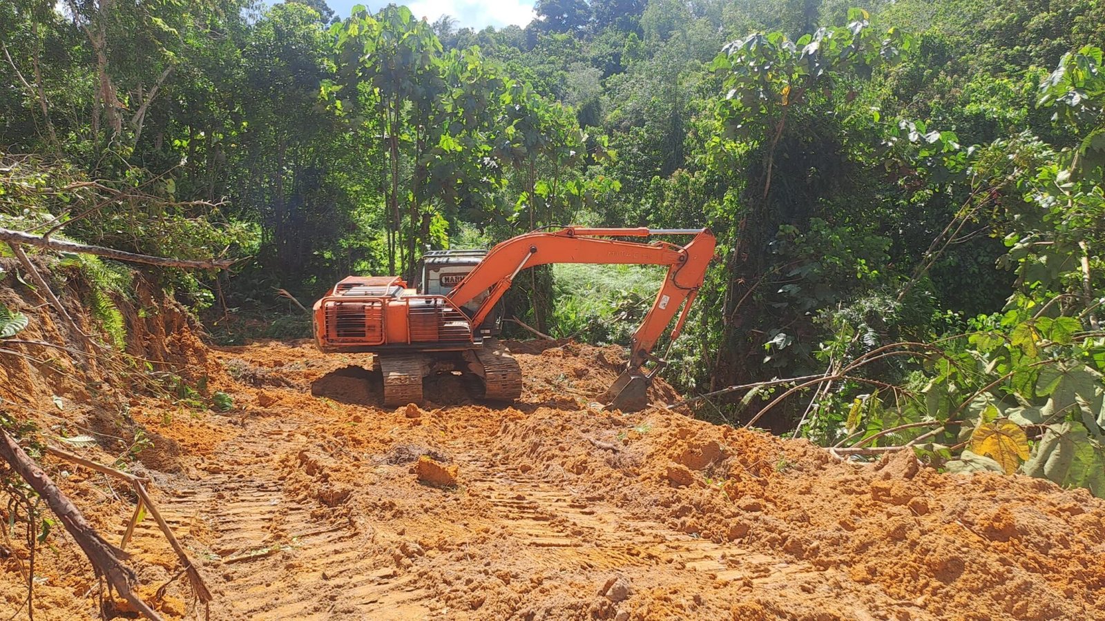 “Pembukaan lahan memang harus dilakukan, untuk memudahkan proses pembuatan badan jalan,” ujar Serka Aditya Chandra saat melakukan pengawasan kegiatan pembukaan lahan.