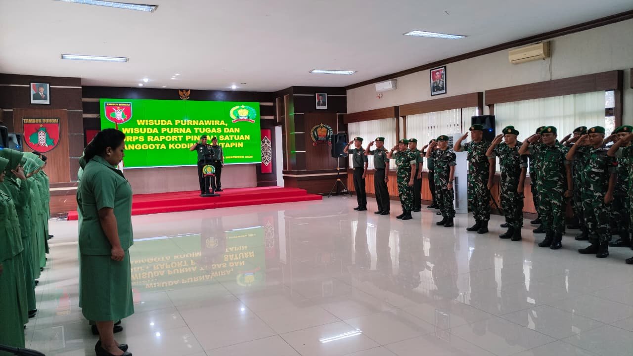 Tapin — Komandan Kodim 1010/Tapin memimpin langsung pelaksanaan Wisuda Purnawira, Wisuda Purna Tugas, serta Korps Prapot Pindah Satuan yang digelar di Aula Parikesit Kodim 1010/Tapin, Senin (1/12).