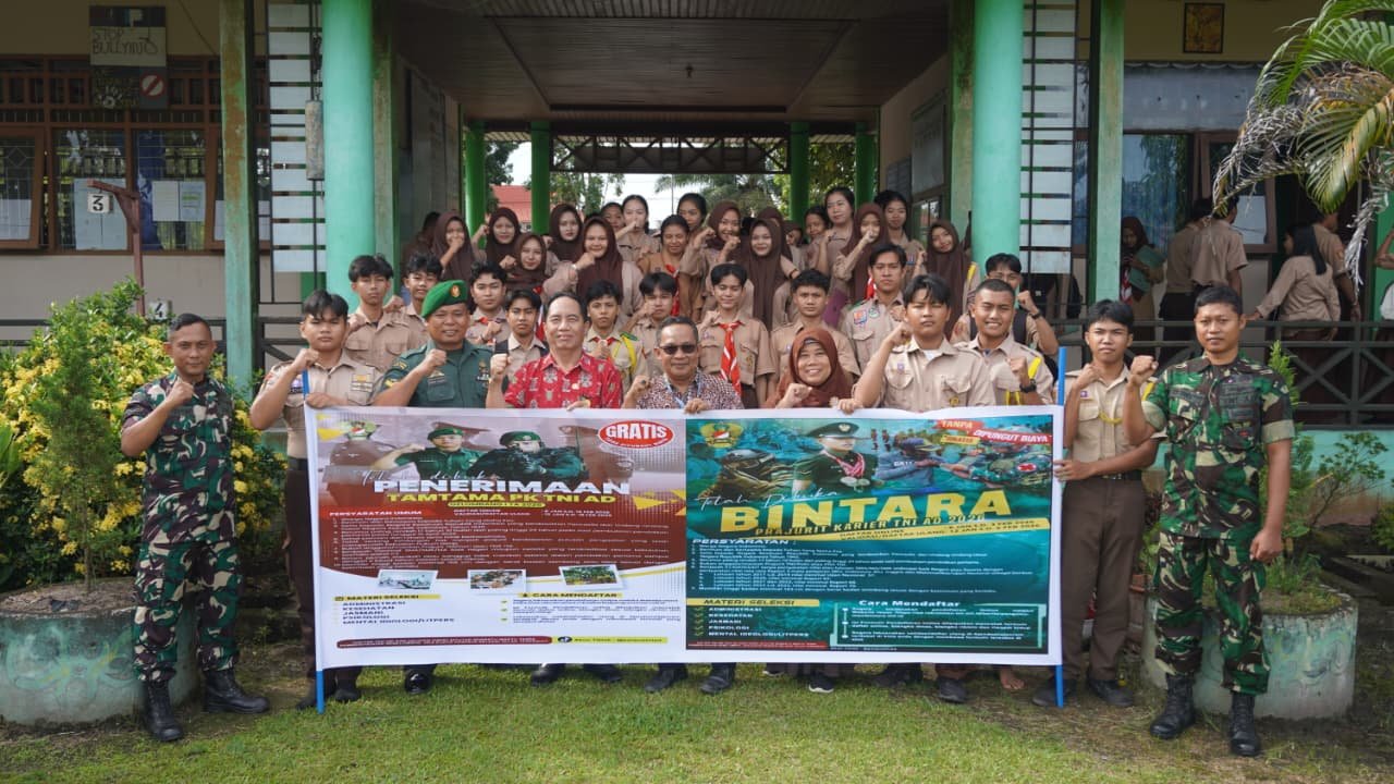 Kotawaringin Timur – Komando Distrik Militer 1015/Sampit Gelar Kegiatan sosialisasi kampanye kreatif penerimaan calon Prajurit Tentara Nasional Indonesia Angkat Darat Tahun 2026. Sosialisasi tersebut bertempat di SMK Negeri 2 Sampit dan SMA Negeri 4 Sampit Kabupaten Kotawaringin Timur, Kamis (15/01/2026)