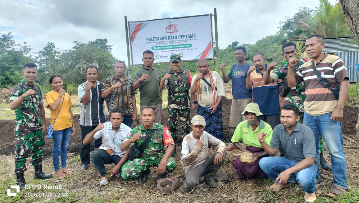 Flores Timur – Komitmen TNI dalam mendukung penguatan ekonomi kerakyatan kembali ditunjukkan melalui kegiatan peletakan batu pertama pembangunan fisik Gerai, Pergudangan dan Kelengkapan Koperasi Desa/Kelurahan Merah Putih di Desa Pululera, Kecamatan Wulanggitang, Kabupaten Flores Timur, Kamis (8/1/2026).
