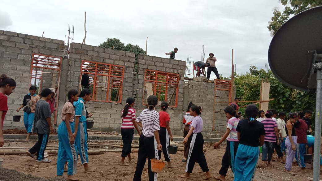 Aktivitas mengangkat material, merapikan area kerja, dan menyiapkan kebutuhan pembangunan dilakukan dengan penuh tanggung jawab. Kolaborasi ini menjadi bukti bahwa generasi muda memiliki kepedulian tinggi terhadap kemajuan pendidikan.