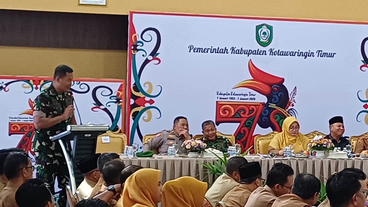 Kotawaringin Timur – Dandim 1015/Spt Letkol Inf Dwi Candra Setyawan yang diwakili oleh Pasi Ops Kodim 1015/Sampit Kapten Inf Sahidin menghadiri Kegiatan Rapat Evaluasi Akhir Tahun 2025 Kabupaten Kotim yang bertempat di Aula Rumah Jabatan Bupati Jln. A. Yani No. 17 Kec. MB. Ketapang Kab. Kotawaringin Timur, Prov. Kalimantan Tengah, Selasa (30/12/2025)