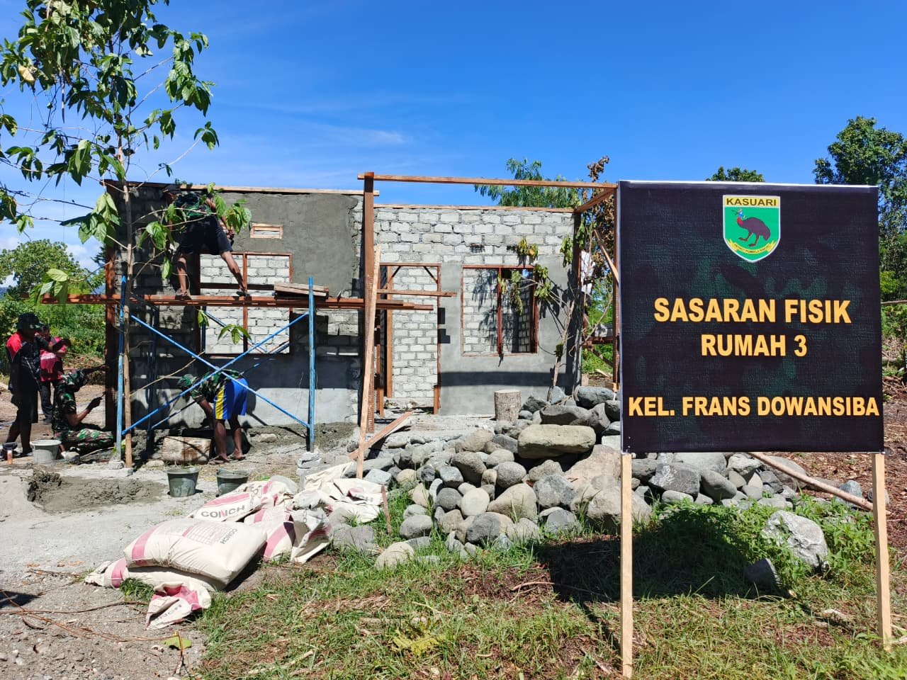 Mimika — Satgas TMMD ke-128 Kodim 1710/Mimika menunjukkan komitmennya dalam menghadirkan pembangunan berkualitas di Kampung Keakwa dengan memilih material terbaik dalam setiap pengerjaan.