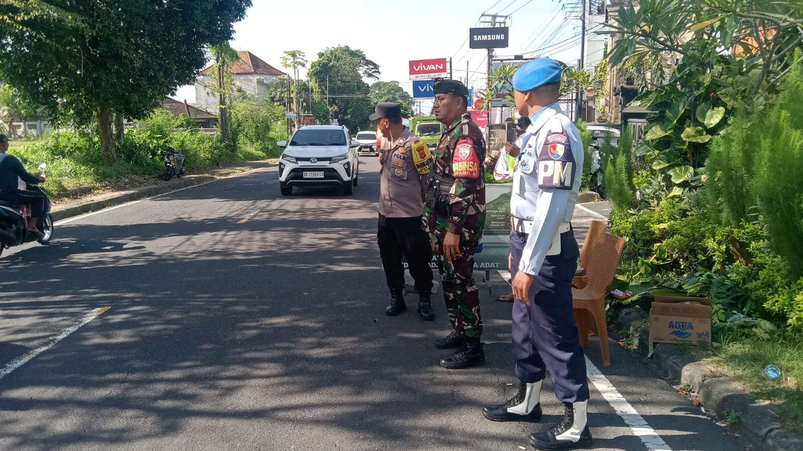 Hal tersebut terlihat nyata saat Babinsa Akah Serka Nengah Sudiarsa bersama Bhabinkamtibmas dan pecalang begitu kompak dan solid menggelar pengawalan dan pengamanan upacara ngangget don bingin ( mengambil daun beringin ) di Desa Akah pada Senin ( 20/04/26 ).