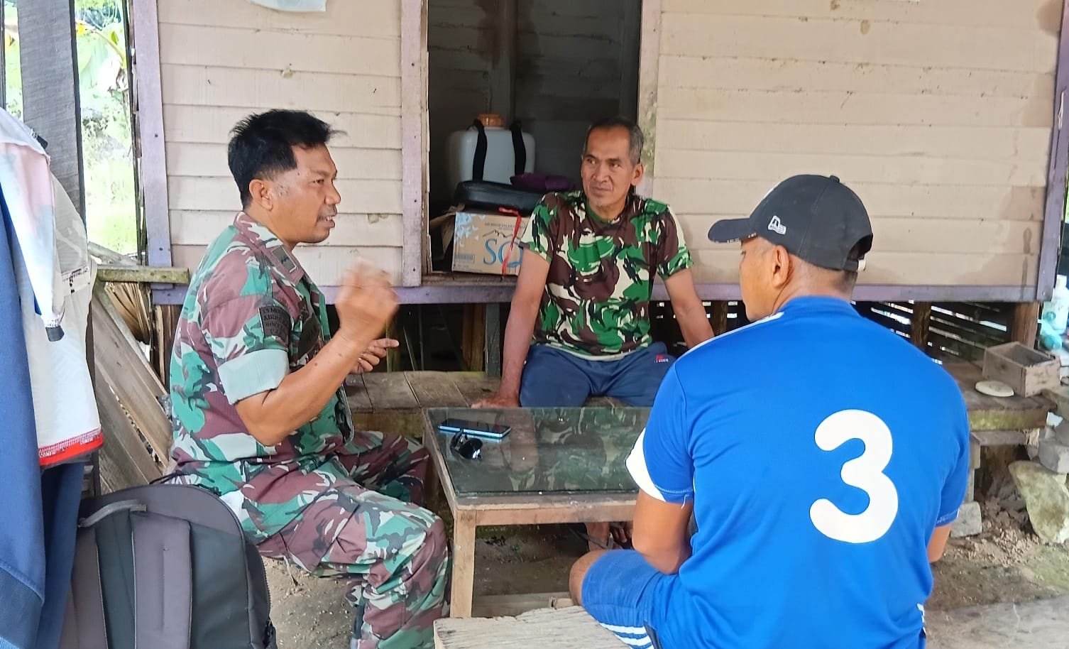 Dalam suasana santai di sebuah pondok sederhana, Pelda Iwan duduk bersama warga dan berdiskusi mengenai berbagai hal yang berkaitan dengan kehidupan sehari-hari, termasuk kondisi sosial, keamanan lingkungan, serta semangat kebersamaan dalam membangun desa. Ia menegaskan bahwa Komsos bukan sekadar pertemuan biasa, melainkan sarana penting untuk mendengar langsung aspirasi masyarakat.