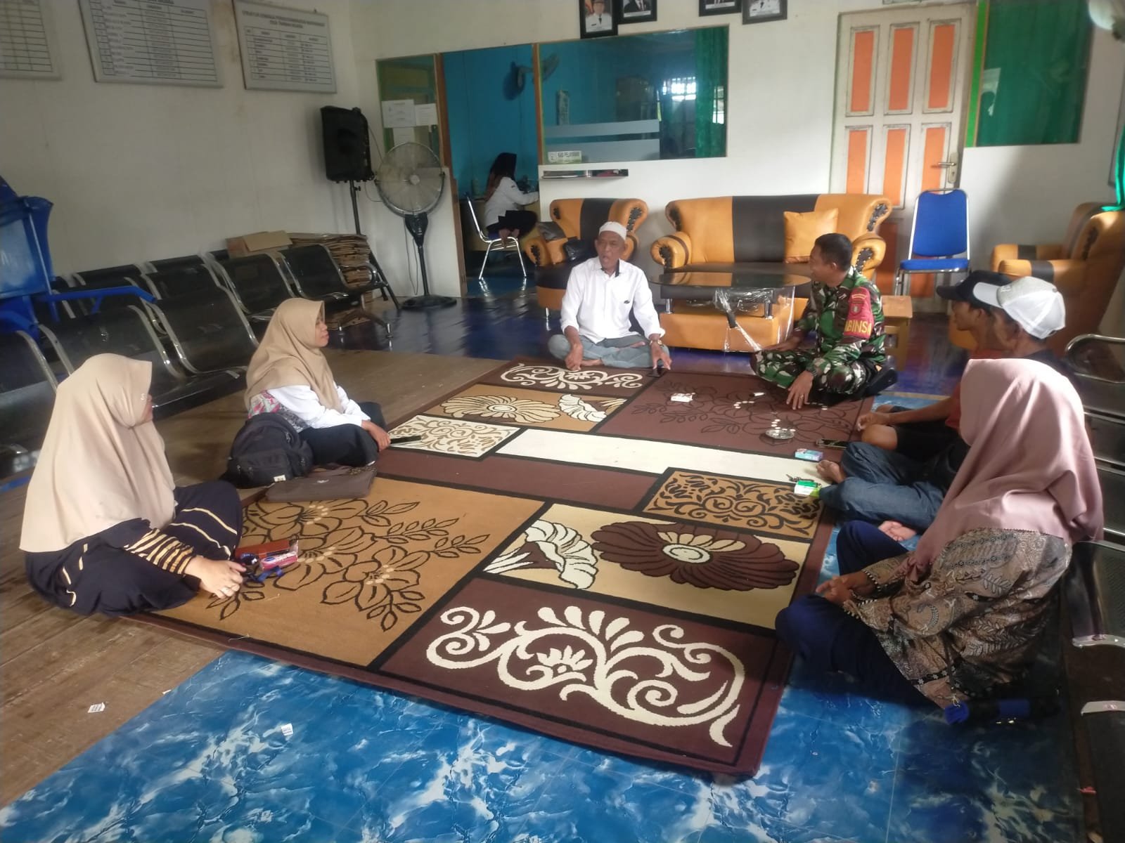 Suasana pertemuan berlangsung hangat, ditandai dengan diskusi terbuka antara Babinsa, mahasiswa, dan warga. Para peserta duduk bersama dalam lingkaran, membicarakan berbagai hal mulai dari peran pemuda dalam menjaga stabilitas sosial hingga pentingnya komunikasi yang efektif antara aparat dan masyarakat.