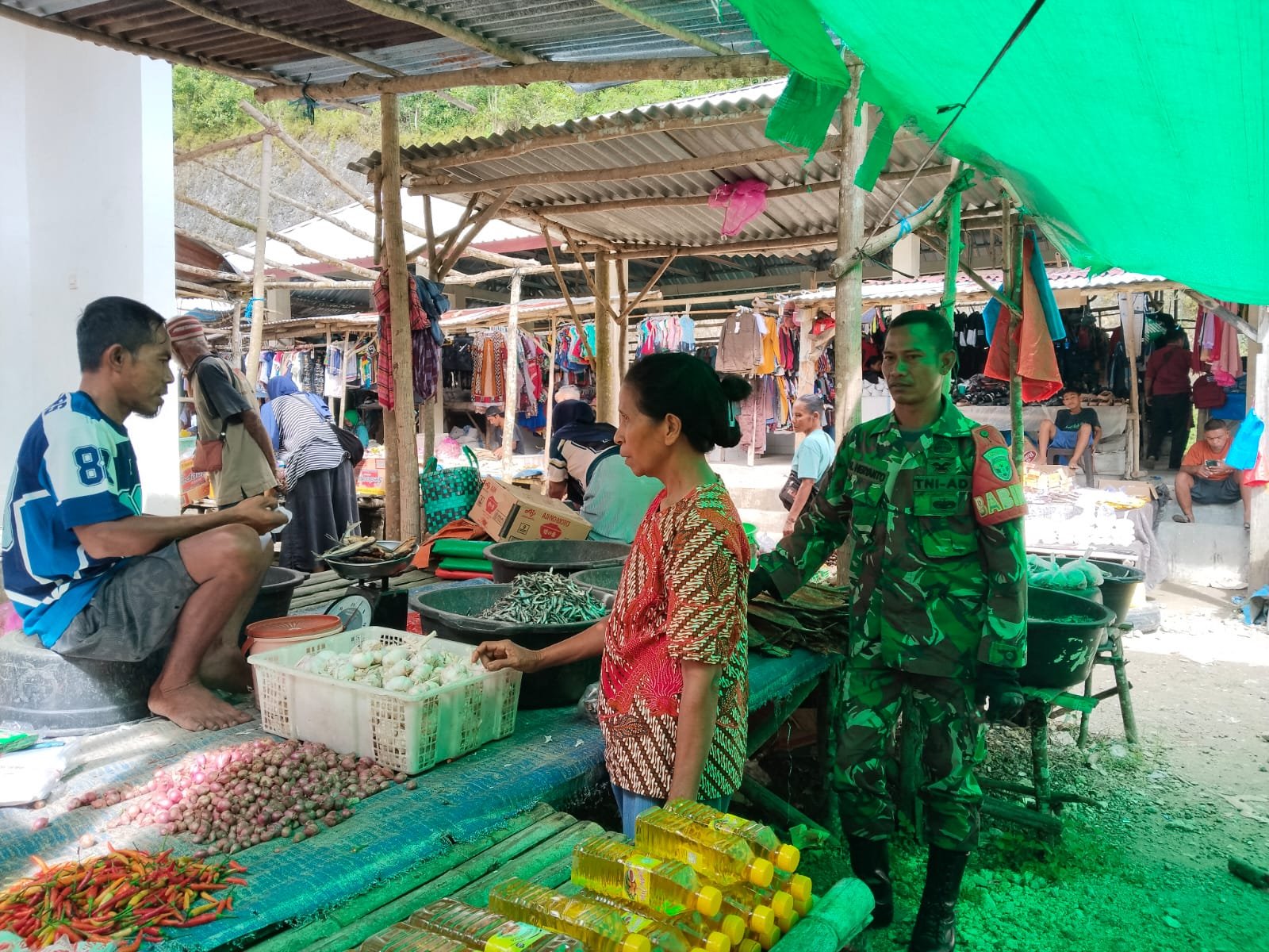 SUMBA BARAT – Babinsa Koramil 01/Loli Kodim 1613/Sumba Barat Sertu Husni Haryanto selalu meluangkan waktu guna membangun komunikasi yang baik bersama masyarakat di wilayah binaannya, salah satunya dengan menyambangi Pasar Karekanduku selatan Kecamatan Tanarighu Kabupaten Sumba Barat, Selasa (17/02/2026).