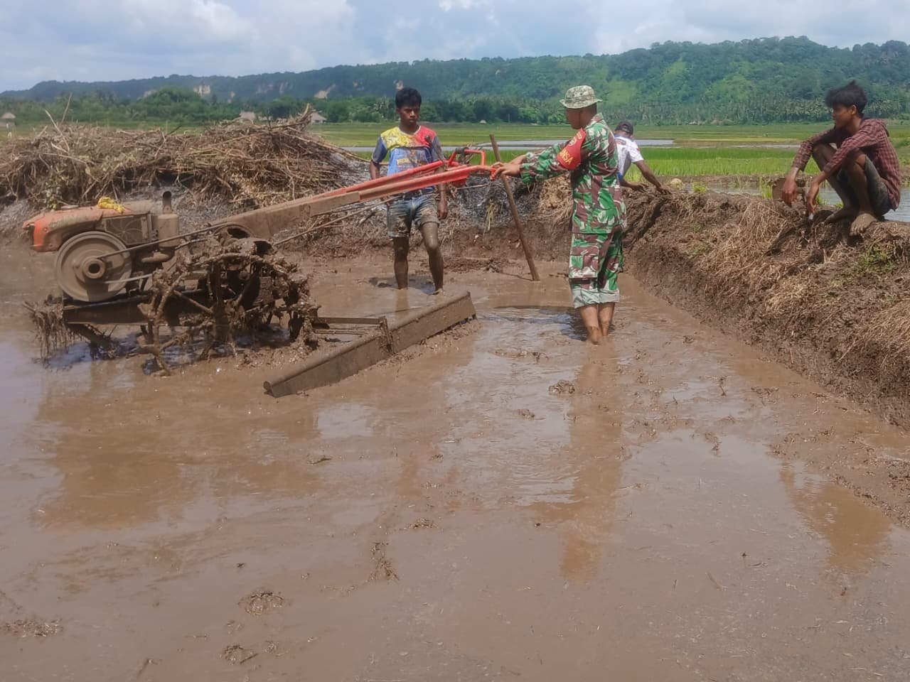 Sertu Arifudin menyampaikan bahwa kesiapan lahan merupakan faktor penting dalam menunjang keberhasilan tanaman padi.