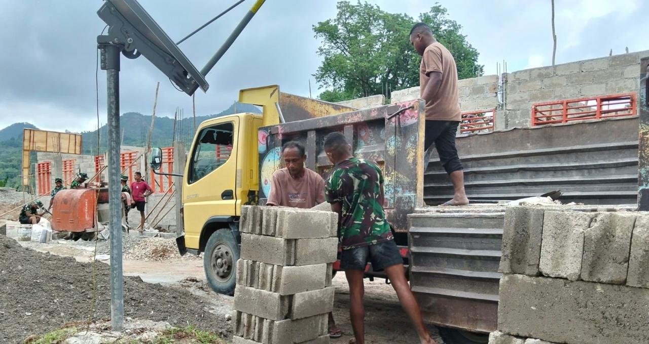 NTT–Kefamenanu – Pembangunan empat Ruang Kelas Baru SMAN Bikomi Nilulat terus menunjukkan progres signifikan. Rabu (18/02/2026), Satgas TMMD Ke-127 Kodim 1618/TTU kembali memastikan kelancaran distribusi material ke Desa Sunkaen.