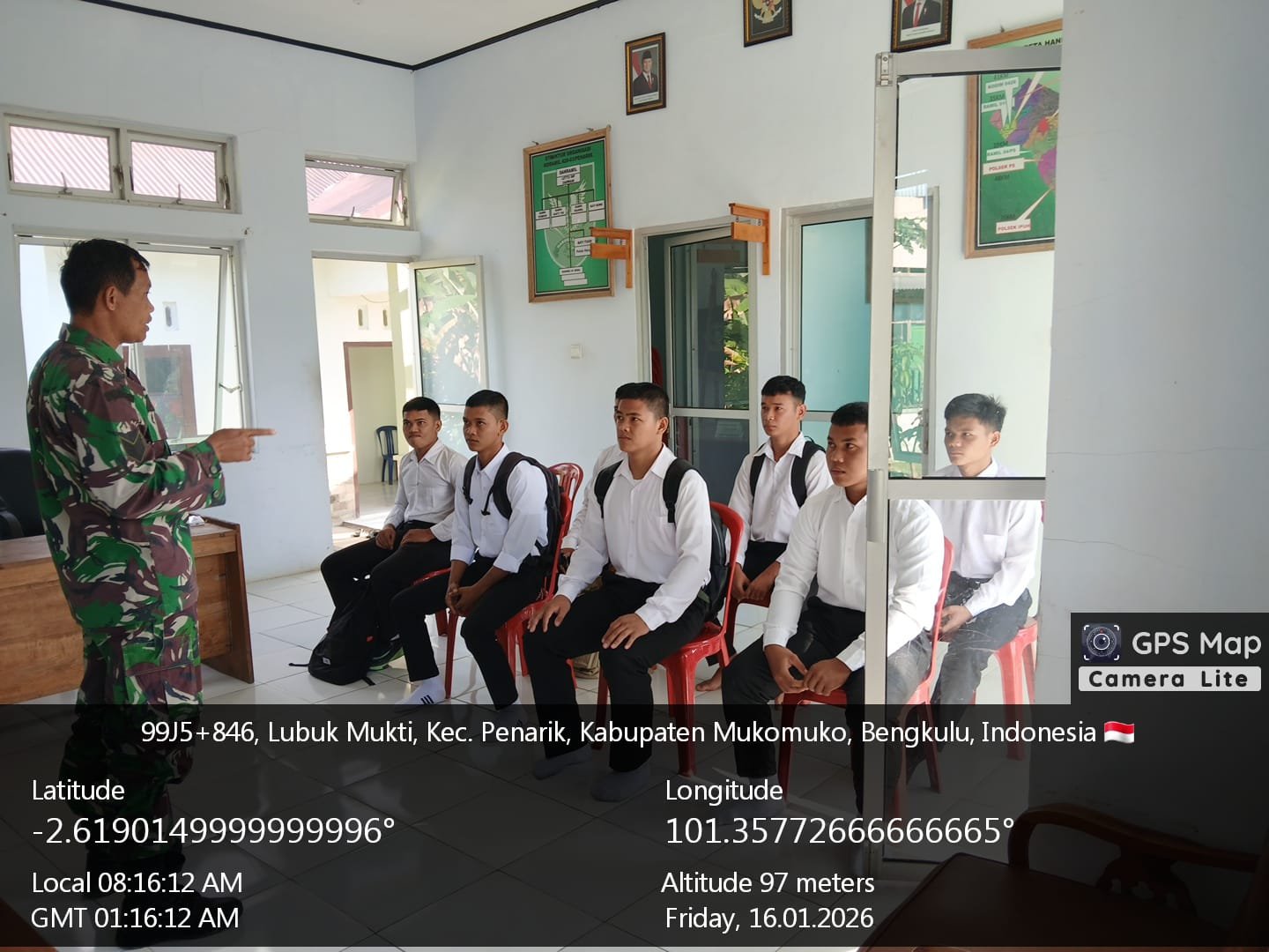 Koramil 0428-03/Penarik memberikan pengarahan kepada para Calon Siswa (Casis) Calon Bintara (Caba) dan Calon Tamtama (Cata) TNI Angkatan Darat yang telah mendaftar secara online, agar segera mempersiapkan diri dan berangkat melaksanakan validasi data ke Ajenrem Bengkulu.