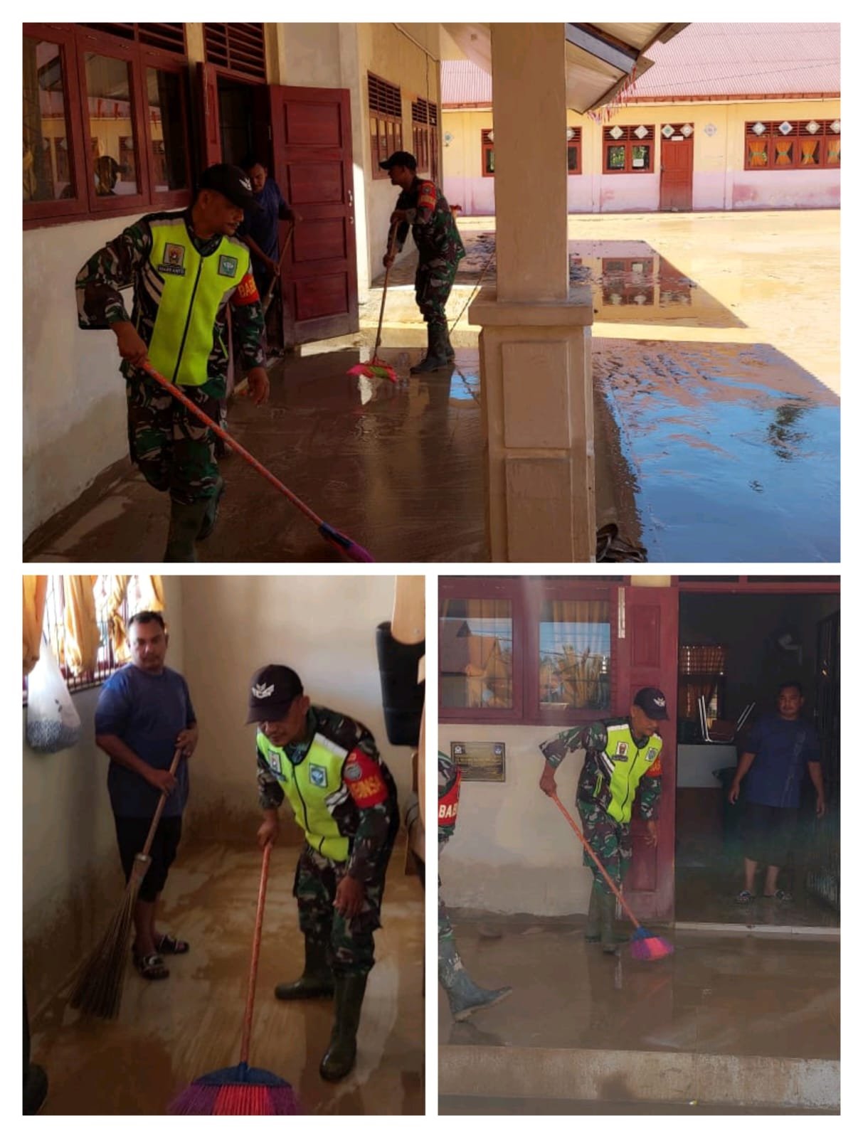 Kegiatan gotong royong tersebut dilakukan sebagai wujud kepedulian TNI terhadap dunia pendidikan serta untuk mendukung terciptanya lingkungan belajar yang bersih, sehat, dan nyaman bagi para siswa pasca banjir, khususnya yang akan melaksanakan ujian. Para personel Koramil bersama masyarakat bahu-membahu membersihkan ruang kelas, merapikan halaman sekolah, serta mengumpulkan sampah yang berserakan.