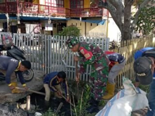 Personel Koramil mengajak warga untuk aktif dan menjadi motivator penggerak masyarakat untuk gotong royong peduli terhadap kebersihan lingkungan. Kegiatan kerja bakti tersebut fokus pada pembersihan bahu jalan dan selokan yang telah tumbuh rumput liar dan banyak sampah yang mengotori pinggir jalan.