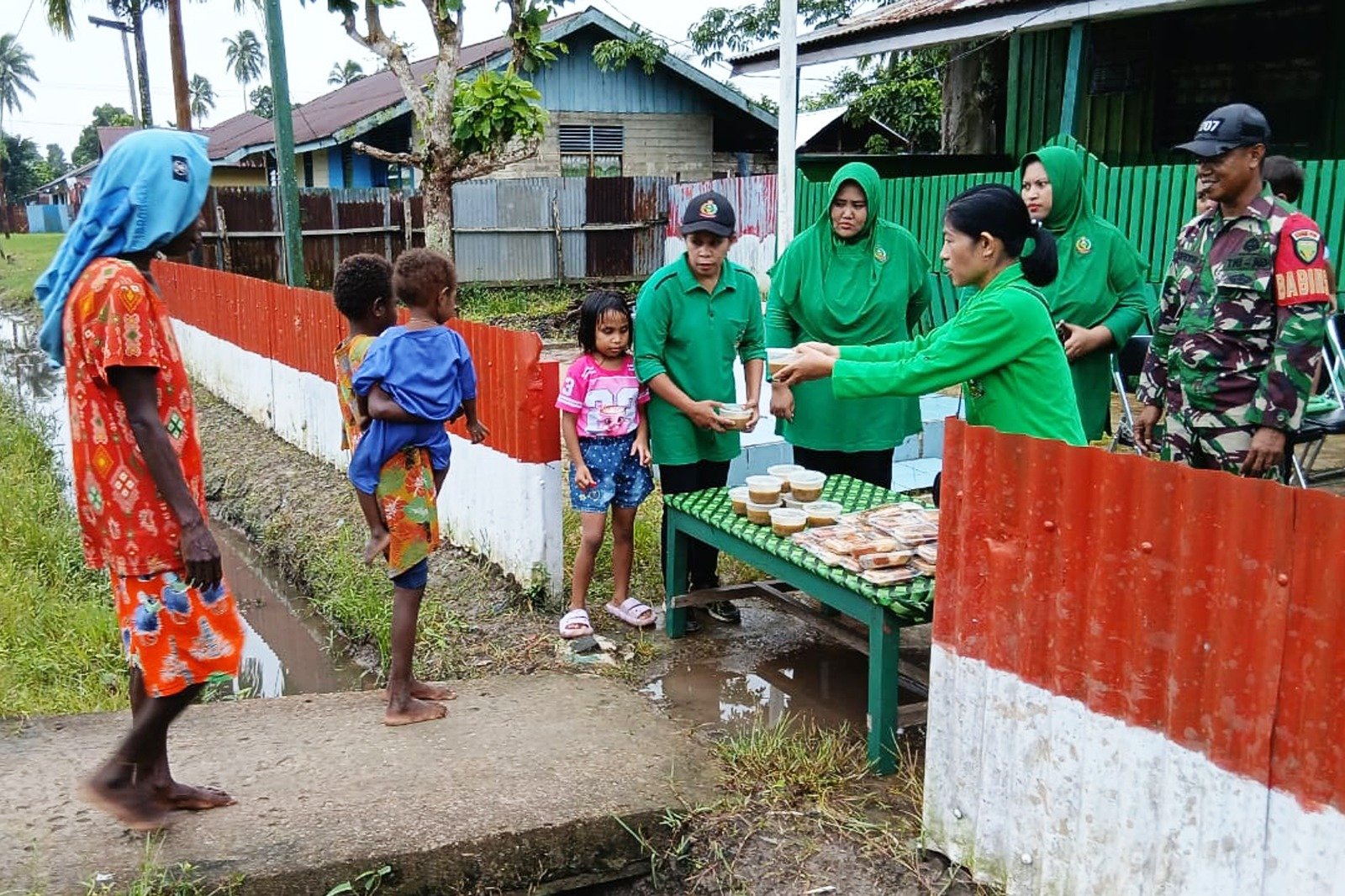MERAUKE – Koramil 1707-04/Kimaam bersama Persit Kartika Chandra Kirana Ranting 5 Kimaam Kodim 1707/Merauke menunjukkan kepedulian dan kebersamaan dengan masyarakat melalui kegiatan berbagi takjil gratis. Kegiatan tersebut berlangsung pada Kamis (5/3/2026) pukul 17.00 WIT di depan Makoramil 1707-04/Kimaam Jln. Gotong Royong, Kampung Woner, Distrik Kimaam, Kabupaten Merauke – Papua Selatan.