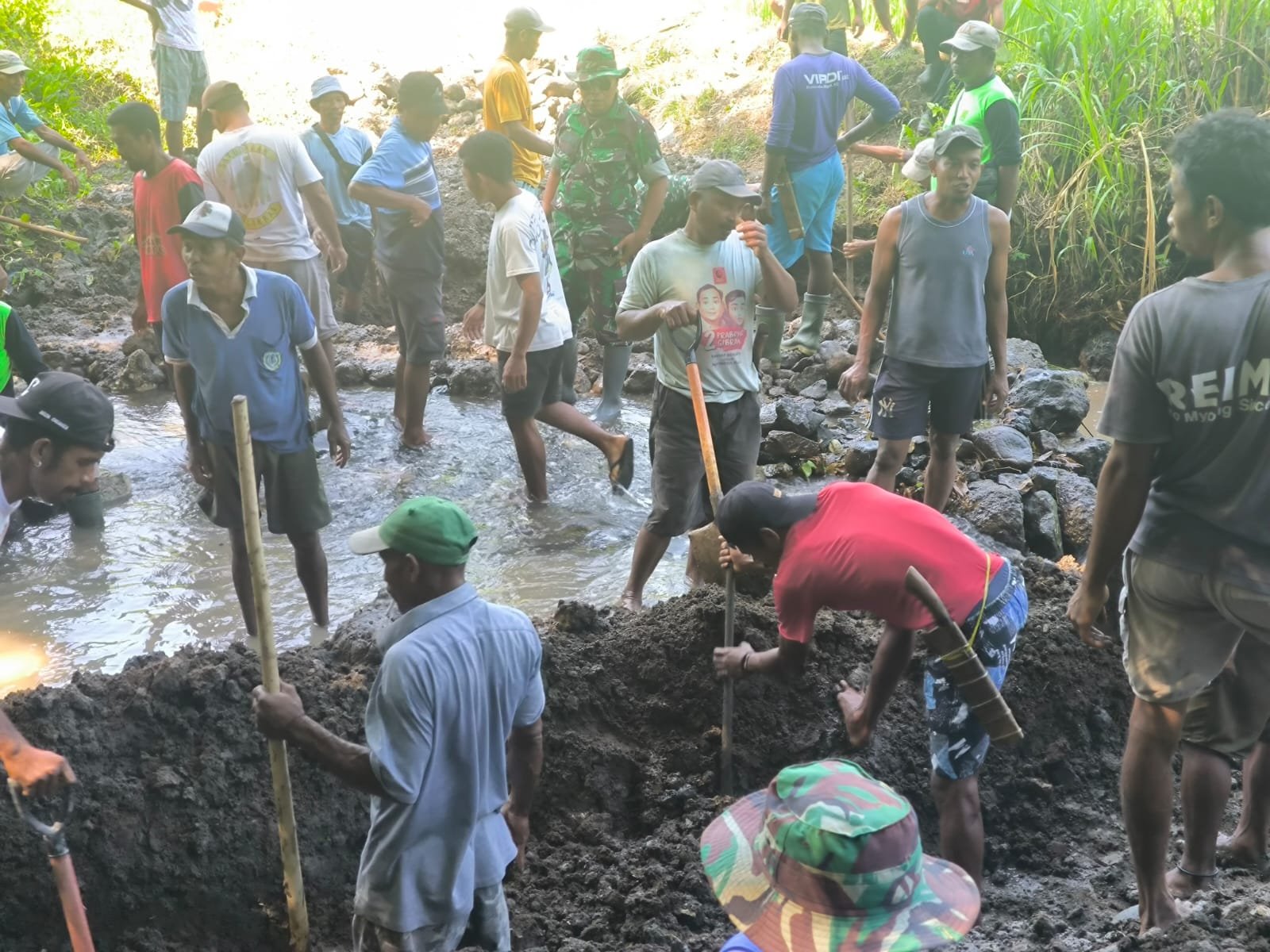 Kegiatan ini menjadi langkah awal dalam pembangunan jembatan yang diharapkan mampu memperlancar akses transportasi warga serta mendukung aktivitas ekonomi masyarakat setempat. Sejak pagi hari, personel TNI dan warga tampak bahu-membahu mengerjakan penggalian pondasi dengan penuh semangat kebersamaan.