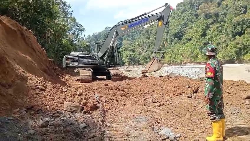 Pengerjaan jalan yang terdampak banjir tersebut melibatkan alat berat yang bekerja secara maksimal di lapangan. Prajurit Korem 012/TU bersama unsur terkait bahu-membahu melakukan penimbunan, perataan badan jalan, serta penguatan struktur agar akses jalan dapat segera dilalui dengan aman.