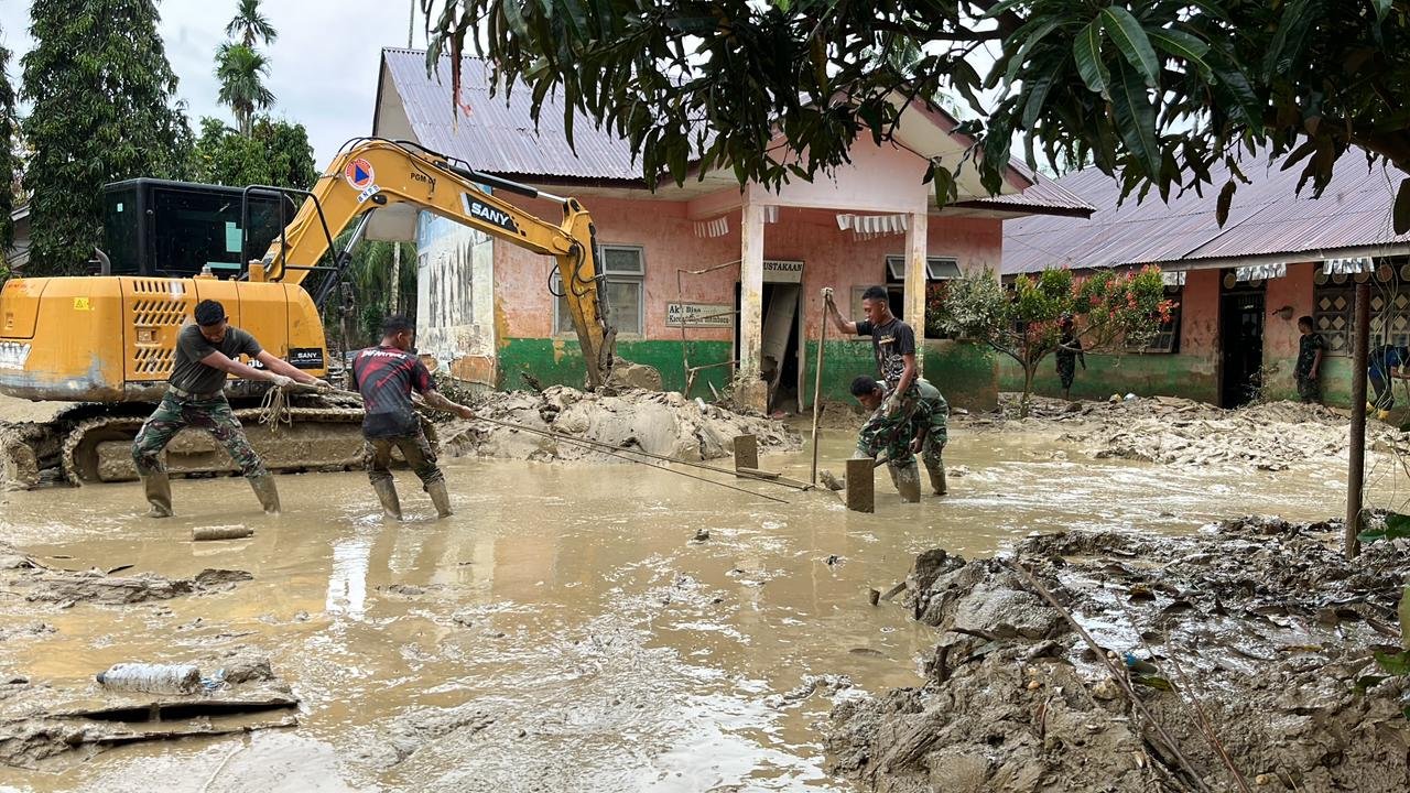 Aceh Tamiang – Prajurit jajaran Korem 012/Teuku Umar melaksanakan kegiatan karya bhakti berupa pembersihan lingkungan Sekolah Dasar Negeri (SDN) 2 Rantau Pauh, sebagai wujud kepedulian TNI terhadap kebersihan dan kenyamanan fasilitas pendidikan, Kamis (08/01/2026).