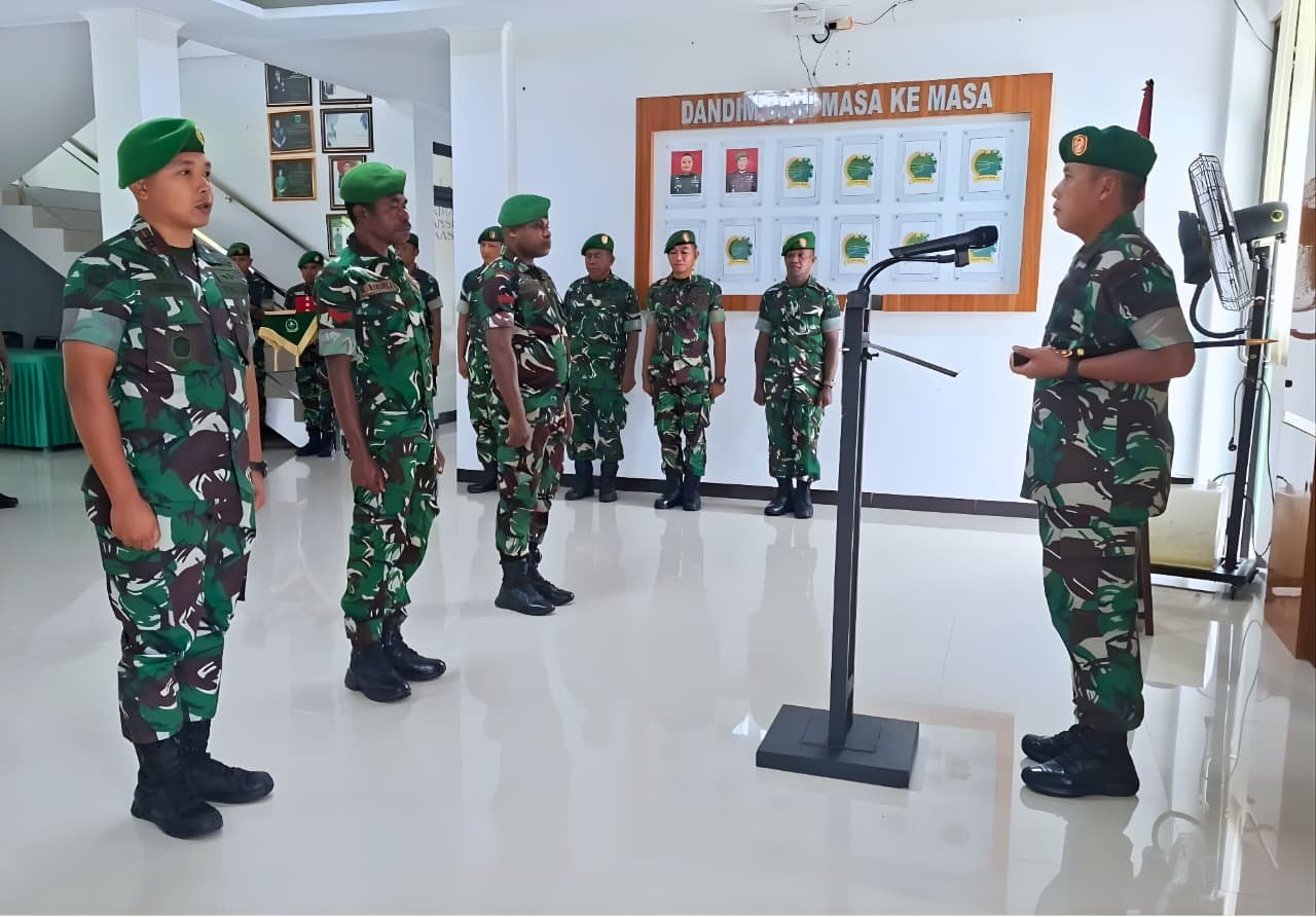 Acara yang berlangsung khidmat tersebut menjadi momen perpisahan bagi tiga personel yang akan melaksanakan tugas di satuan baru.