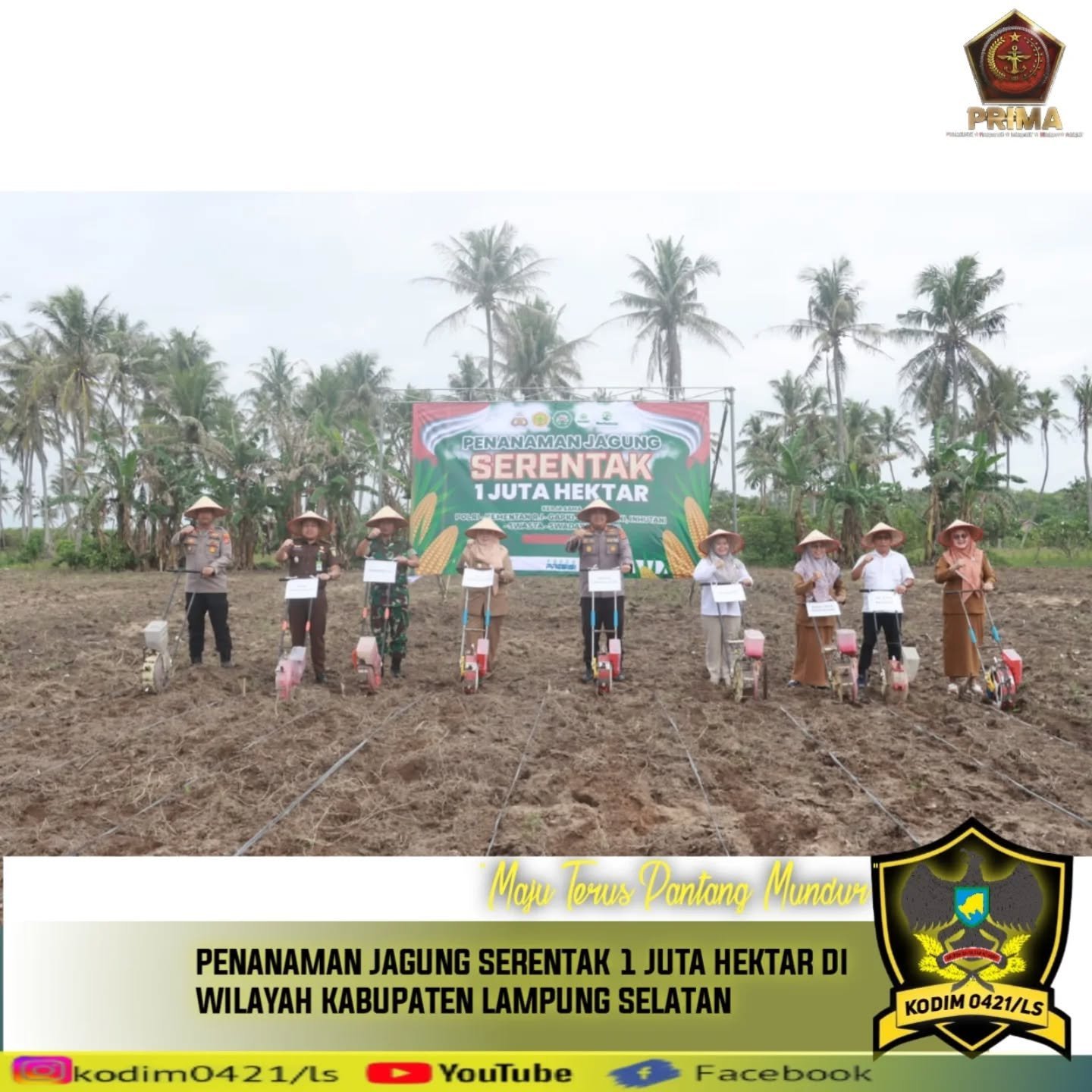 Lampung Selatan, 21 Januari 2025 – Dalam mendukung program Asta Cita Presiden Republik Indonesia, Prabowo Subianto, untuk mencapai swasembada pangan, Polres Lampung Selatan, Kodim 0421/LS, dan Forkopimda Kabupaten Lampung Selatan bersinergi menyiapkan lahan tanam jagung seluas satu juta hektar.