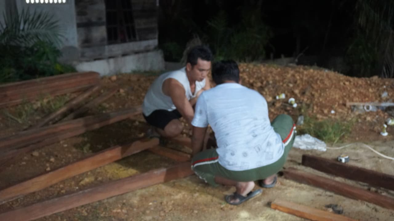 Kegiatan lembur ini dilakukan guna mempercepat penyediaan sarana penampungan air bersih bagi warga sekitar. Personel Satgas terlihat kompak menyiapkan dudukan dan memastikan posisi tandon terpasang dengan kokoh serta aman digunakan.