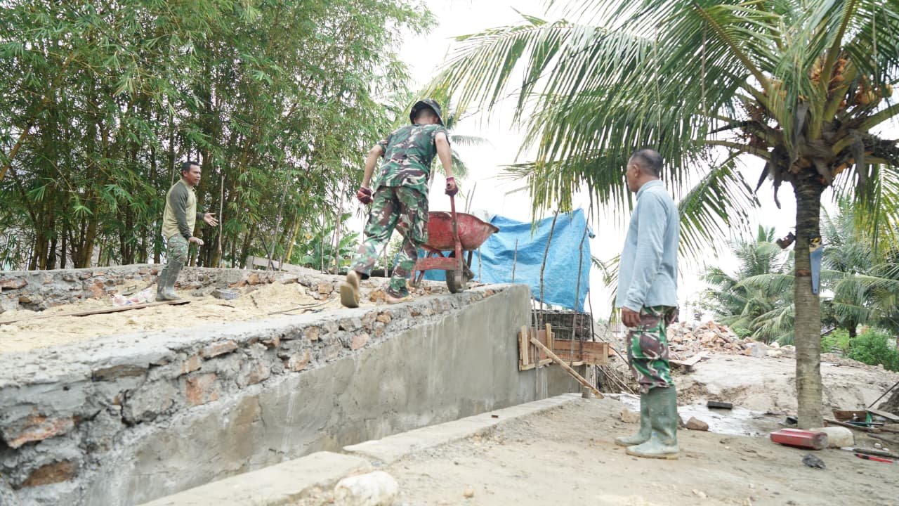 Semangat gotong royong antara prajurit dan warga menjadi energi tambahan dalam menyelesaikan tahap pengecoran yang menjadi fondasi utama kekuatan jembatan.