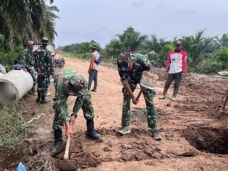 Lumpur dan Cuaca Tak Halangi Satgas TMMD 127 Tuntaskan Pengecoran Jembatan Sambuli