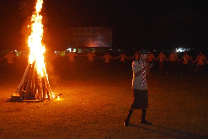 Suasana haru dan penuh makna terasa saat malam renungan yang dilaksanakan pada Sabtu (25/4/2026) pukul 22.00 WIT. Seluruh peserta berkumpul di lapangan untuk mengikuti pembacaan puisi renungan, dilanjutkan dengan api unggun serta menyanyikan lagu “Bagimu Negeri”. Momen ini menjadi penguat semangat dan tekad generasi muda untuk terus mengabdi kepada bangsa dan negara.