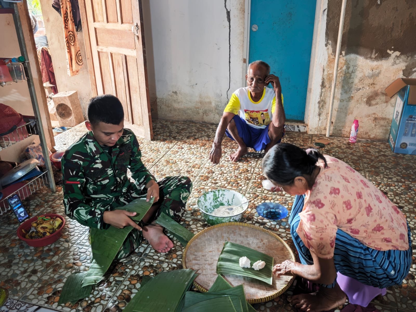 Kehadiran anggota Satgas TMMD dalam kegiatan usaha rumahan masyarakat memberikan suasana kebersamaan yang hangat. Selain membantu pekerjaan warga, kegiatan tersebut juga menjadi ajang saling bertukar pengalaman dan memperkuat hubungan sosial.