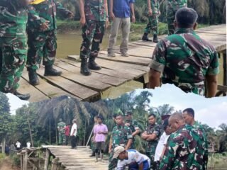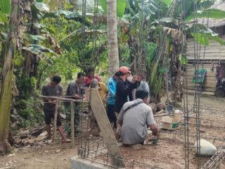 Memasuki tahapan penting, para prajurit bersama warga mulai melakukan perakitan dan pemasangan besi tulangan sebagai fondasi utama badan jembatan. Tahap ini menjadi penentu kekuatan struktur sebelum dilaksanakan pengecoran.