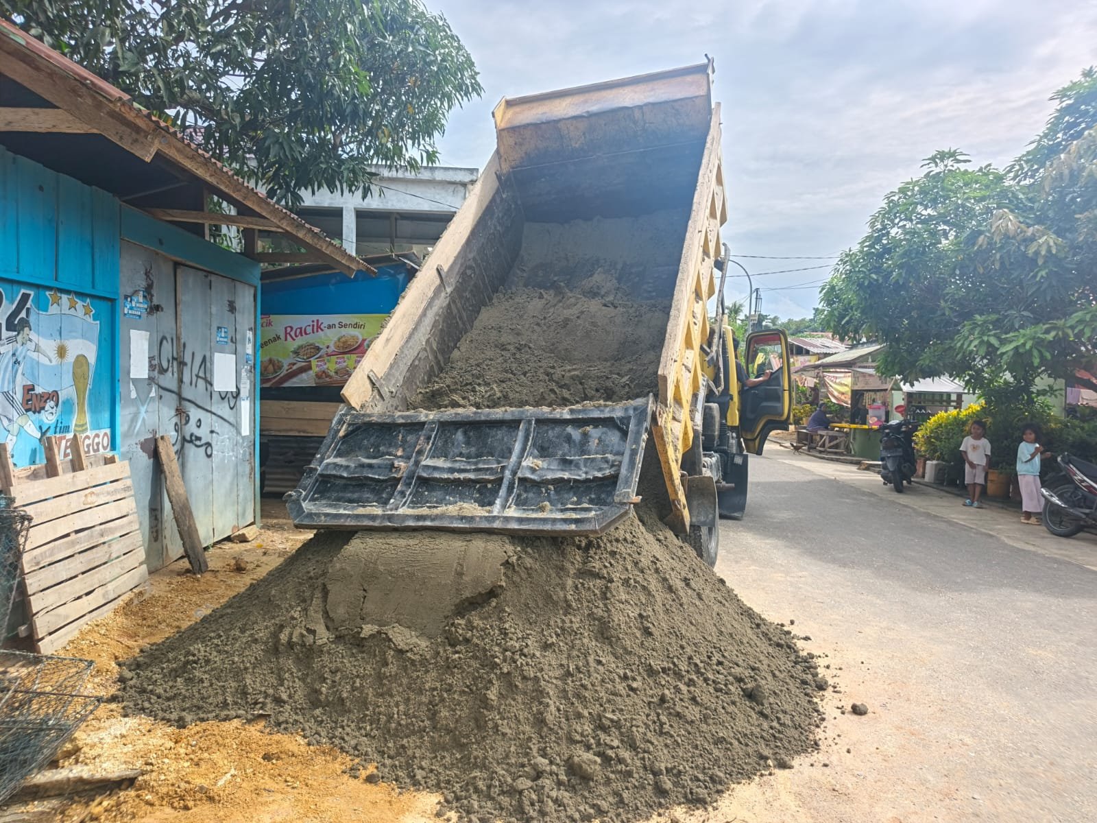 Material berupa semen, pasir, batu, dan perlengkapan konstruksi lainnya terus dilangsir oleh personel Satgas bersama masyarakat. Proses distribusi ini menjadi faktor penting dalam menjaga ritme pekerjaan agar tidak mengalami hambatan di lapangan.