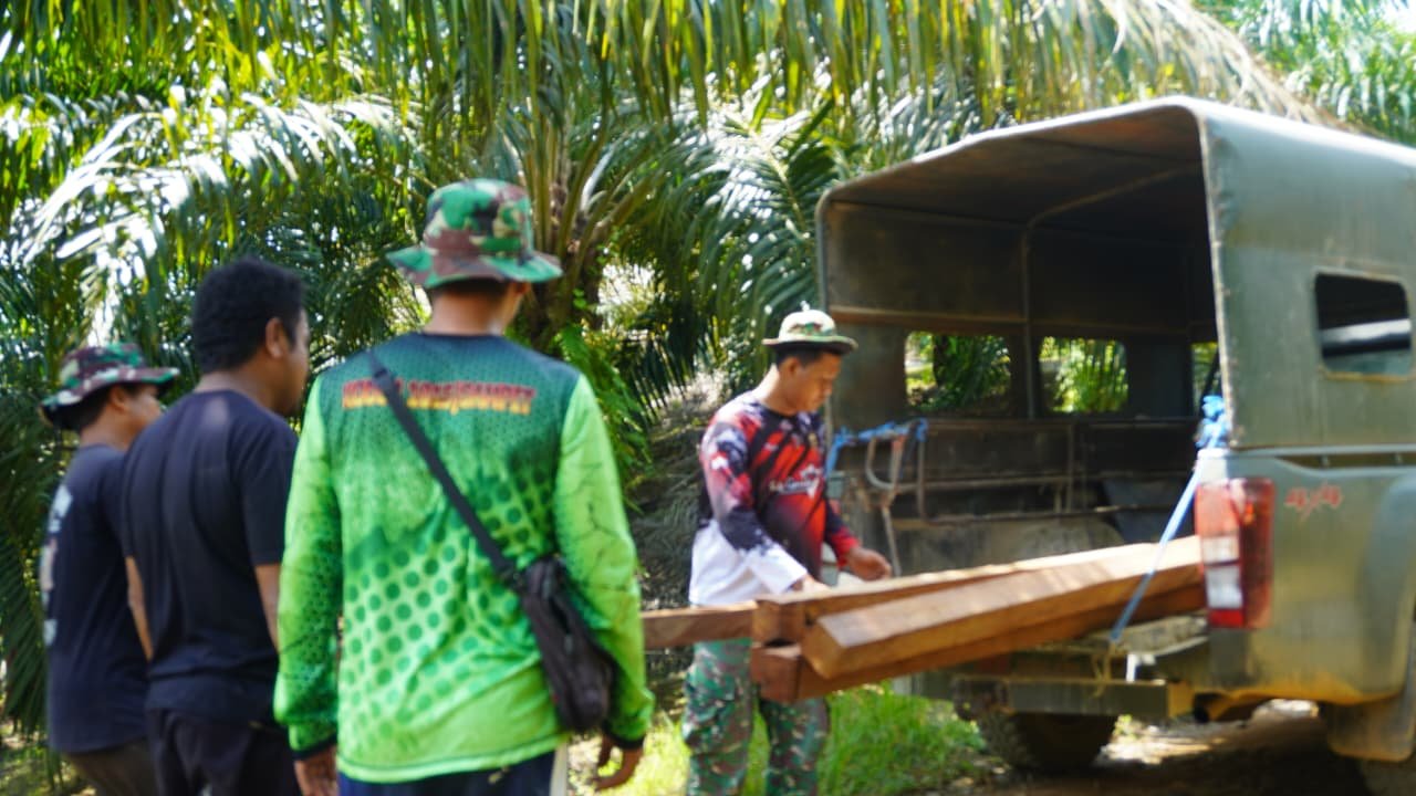 Kotawaringin Timur – Material kayu untuk pembangunan jembatan dalam program TMMD ke-127 Kodim 1015/Sampit telah tiba di lokasi sasaran, Rabu (04/03/2026). Kedatangan kayu jenis ulin tersebut menandai kesiapan Satgas untuk memulai pembangunan jembatan akses perkebunan di wilayah Desa Tri Buana, Kecamatan Telaga Antang.