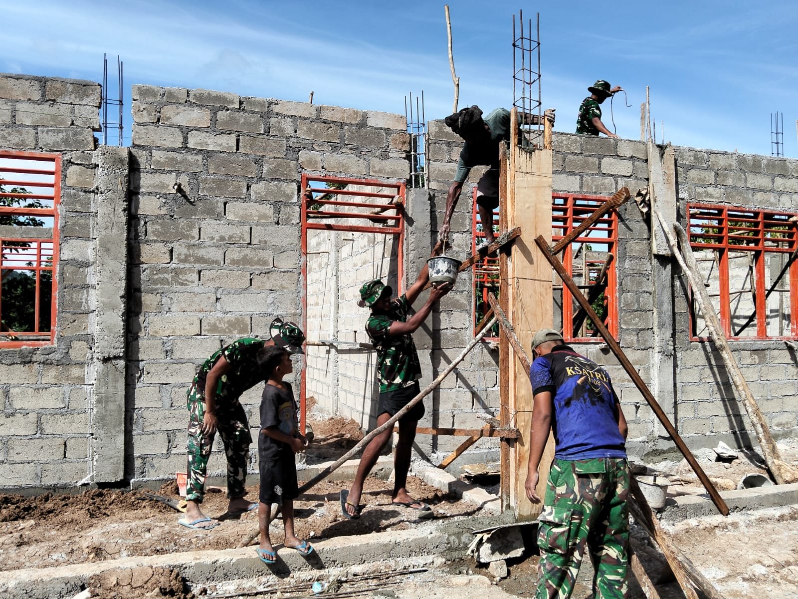 Di bawah terik matahari, personel Satgas TMMD dan warga bahu-membahu mengaduk campuran semen, menyusun rangka, serta memastikan setiap tiang berdiri dengan presisi dan kekuatan maksimal. Setiap tetes keringat yang jatuh menjadi bukti nyata dedikasi dan kepedulian terhadap kemajuan pendidikan di wilayah perbatasan. Proses pengecoran dilakukan dengan penuh ketelitian, mengutamakan kualitas konstruksi agar bangunan yang berdiri nantinya benar-benar kokoh dan tahan lama.